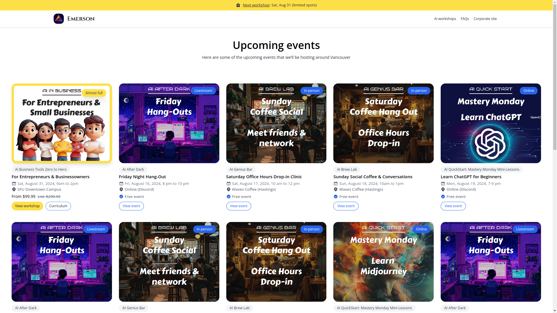 We offer a combination of in-person and online events, workshops, and seminars to help you learn more about AI and its applications.